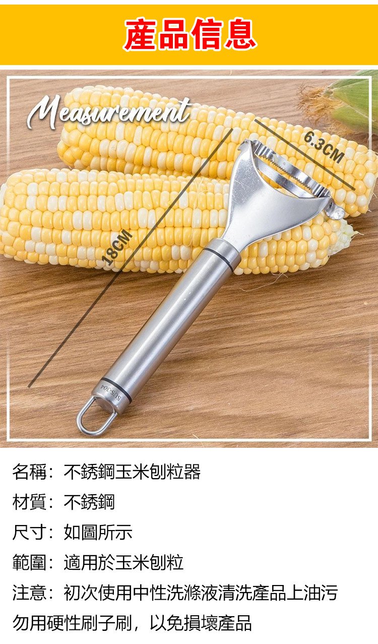 5分鐘前火爆熱賣 不銹鋼玉米刨粒器 鋒利鋸齒,剝落乾淨,絕不浪費 剝玉米,胡蘿蔔皮 土豆皮,304不鏽鋼材質,易於清洗 - 【狂殺特賣】9入組-NT$1380